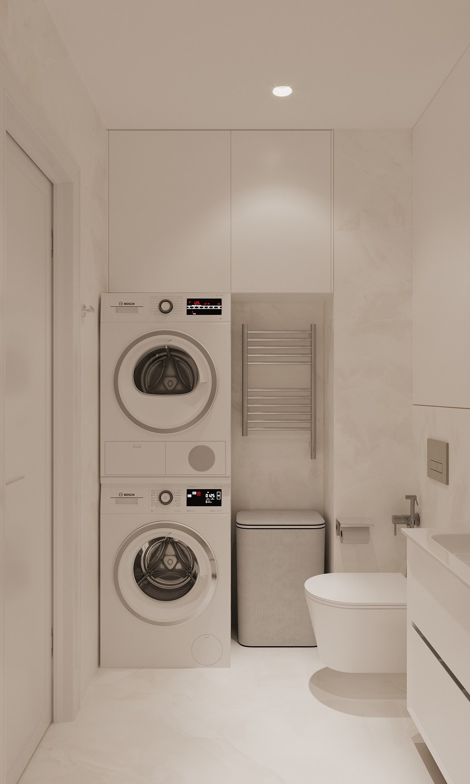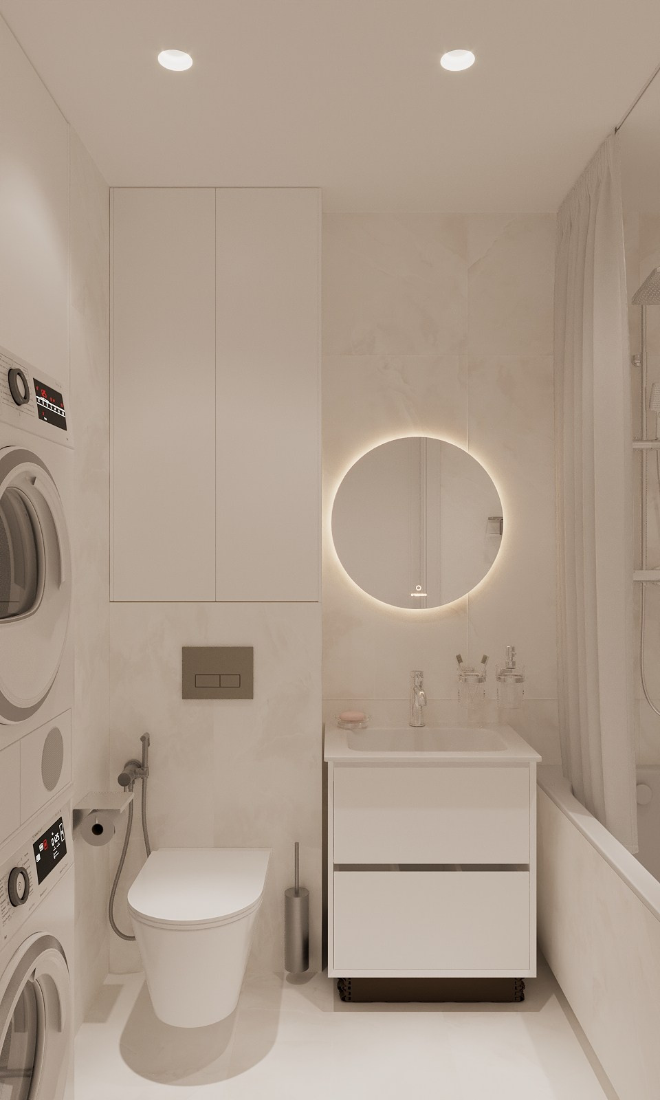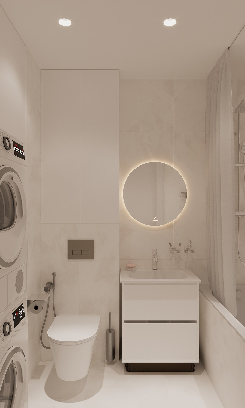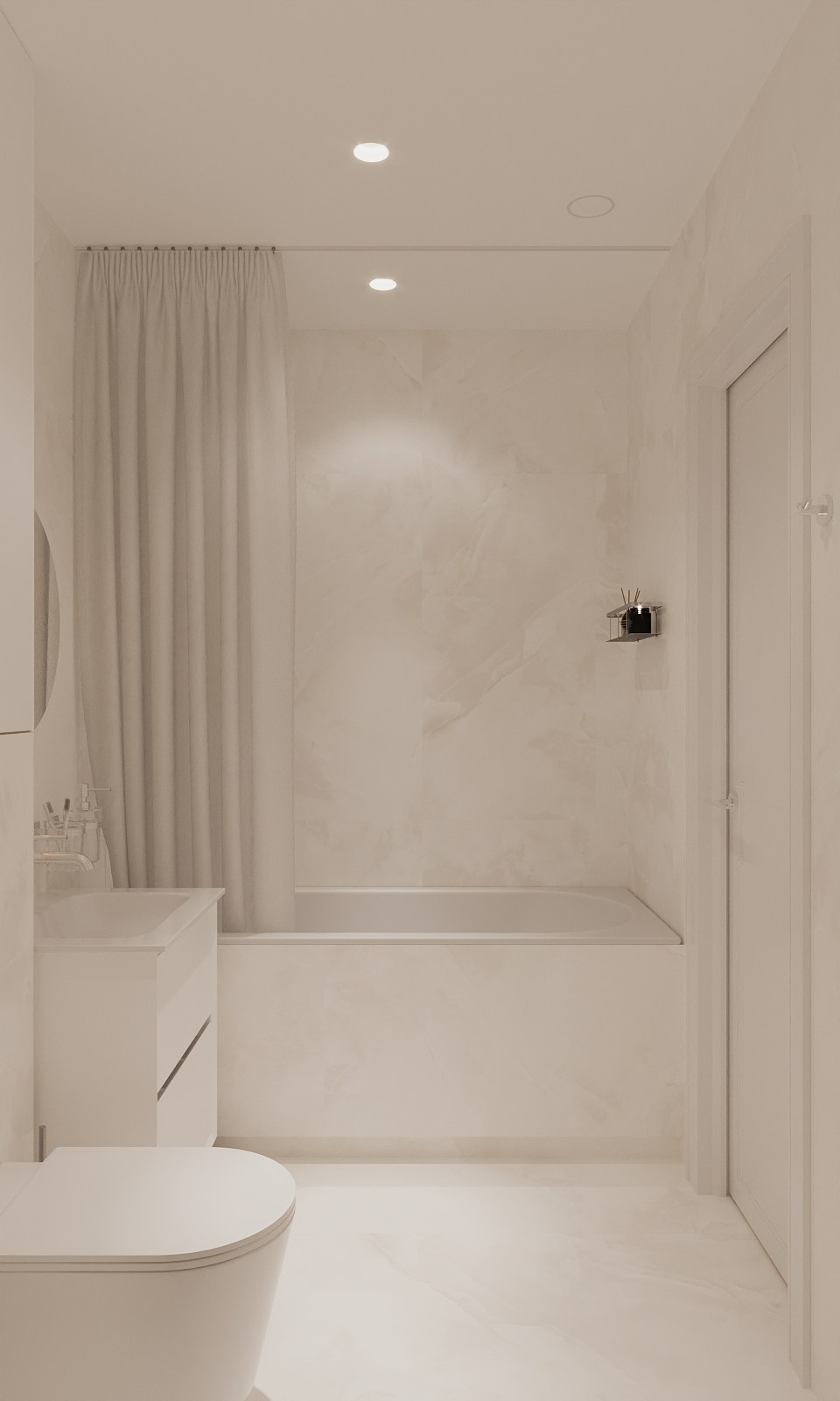 Высота потолка 2600 мм. За фасадом над унитазом коллекторный узел со счетчиками и проточным водонагревателем. Электрич полотенцесушитель выбираем левый/правый. Держатель бумаги перенесла, мое мнение- будет там мешать, посмотрите еще раз, пожалуйста. Делаем под ванной нишу для ног или зашиваем прямо до пола (сделала два варианта)?